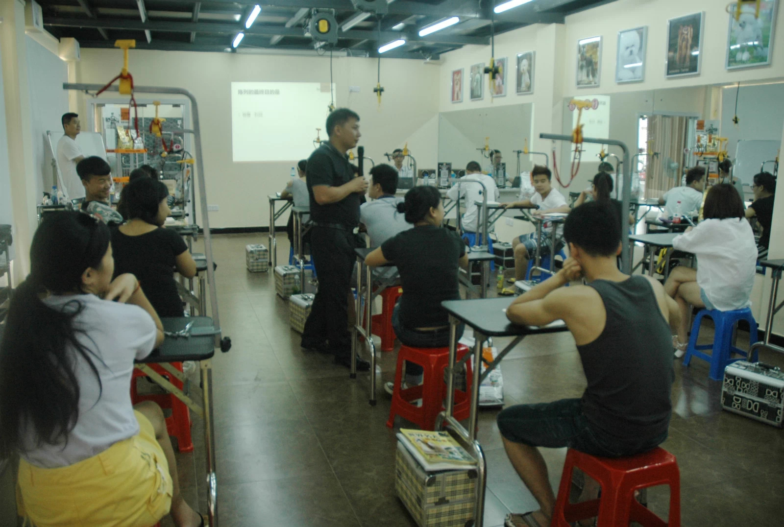 今天我們貴族寵物美容學校特地請到了上海比瑞吉公司為同學們講述了一堂實用且生動形象的課程---產品陳列.