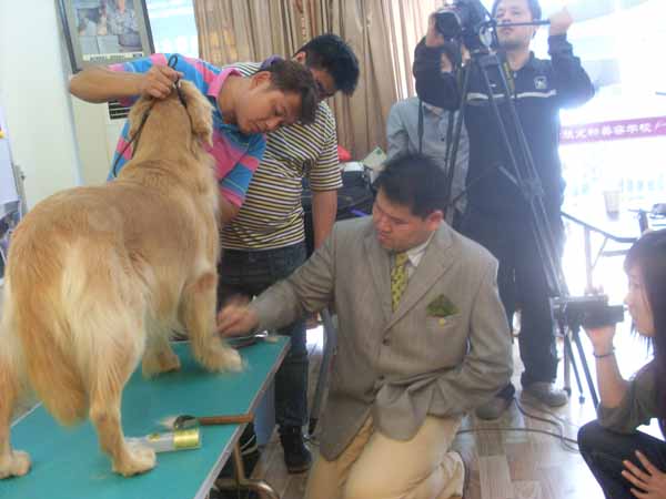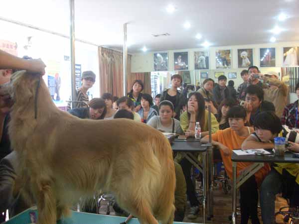 威廉大師在犬展期間蒞臨我校,專門為學員們上了堂金毛美容課